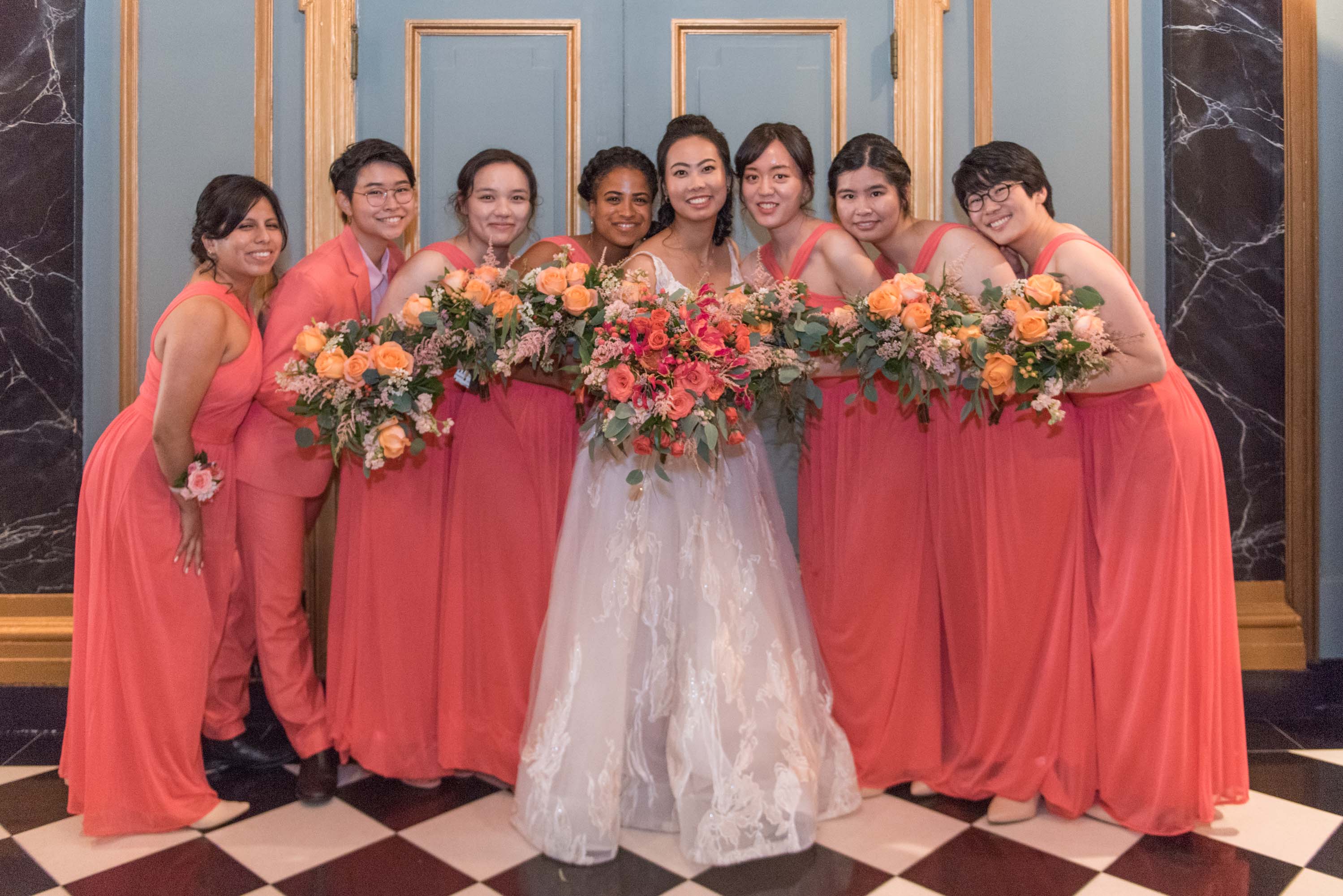 Bridesmaids: Yishan Chen, Susan Ye, Alexis Peña, Juliana Chen, Amy “Ace” Chen, Rachel Adams (Usher)