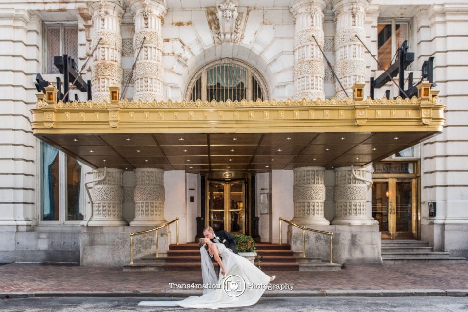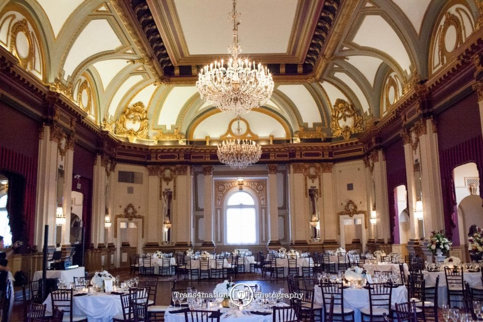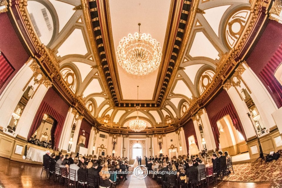 Now mix in a little bit of class and grandeure and you have a wedding made for Kings and Queens. Gold themed and dramatic gold-gilded architecture, soaring ceilings and crystal chandeliers. Historic. Rich with texture, fine wine and elegant hors d’oeuvres. The wood-carvings of the popular Owl Bar. Black tie. Fine dining. And a dash of friends from college and family who love to dance…All the markings of a great celebration!