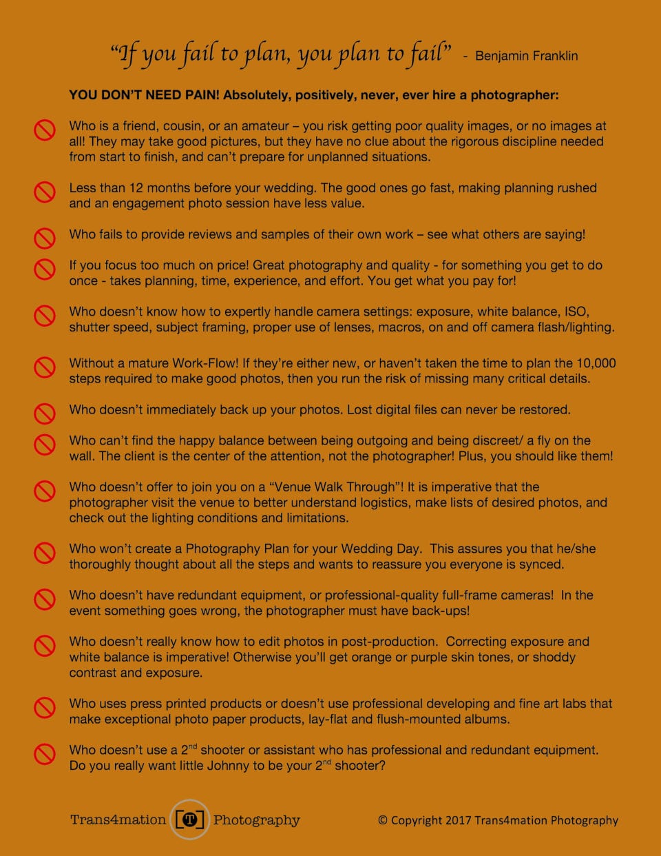 Failure in Wedding Photography | Annapolis Wedding Photographer I’ve always been taught: “If you fail to plan, you plan to fail”. It can’t be any more true for brides and grooms who are planning a wedding and hope to hire a professional...