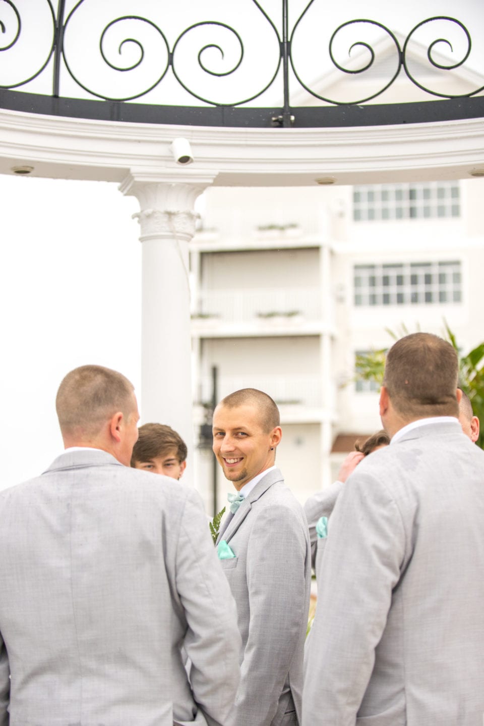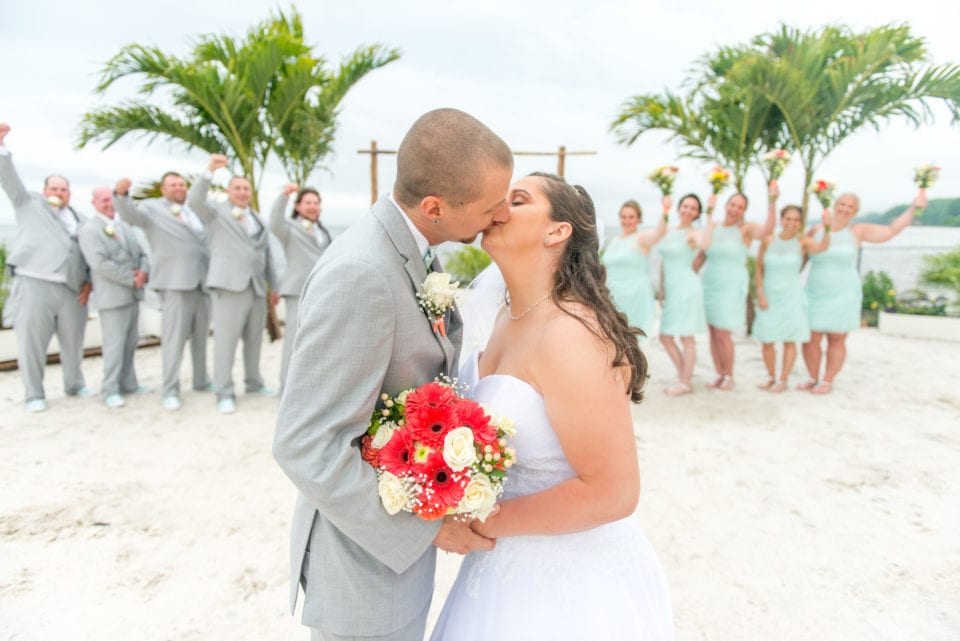 It was around 5p.m. that a decision needed to be made about keeping the ceremony outdoors or moving it indoors. As everyone nervously waited for a decision, Mother Nature suddenly heard our prayers, and as if on queue, the rains stopped, the clouds rolled back, and the sun poked out. We even saw a rainbow! The ceremony was brief (thanks to the officiant performing an abbreviated version just in case the rains returned), and we went on to create great photos before heading back to the reception. The Baltimore Orioles Bird and the Baltimore Ravens Poe mascots made a brief stop too!