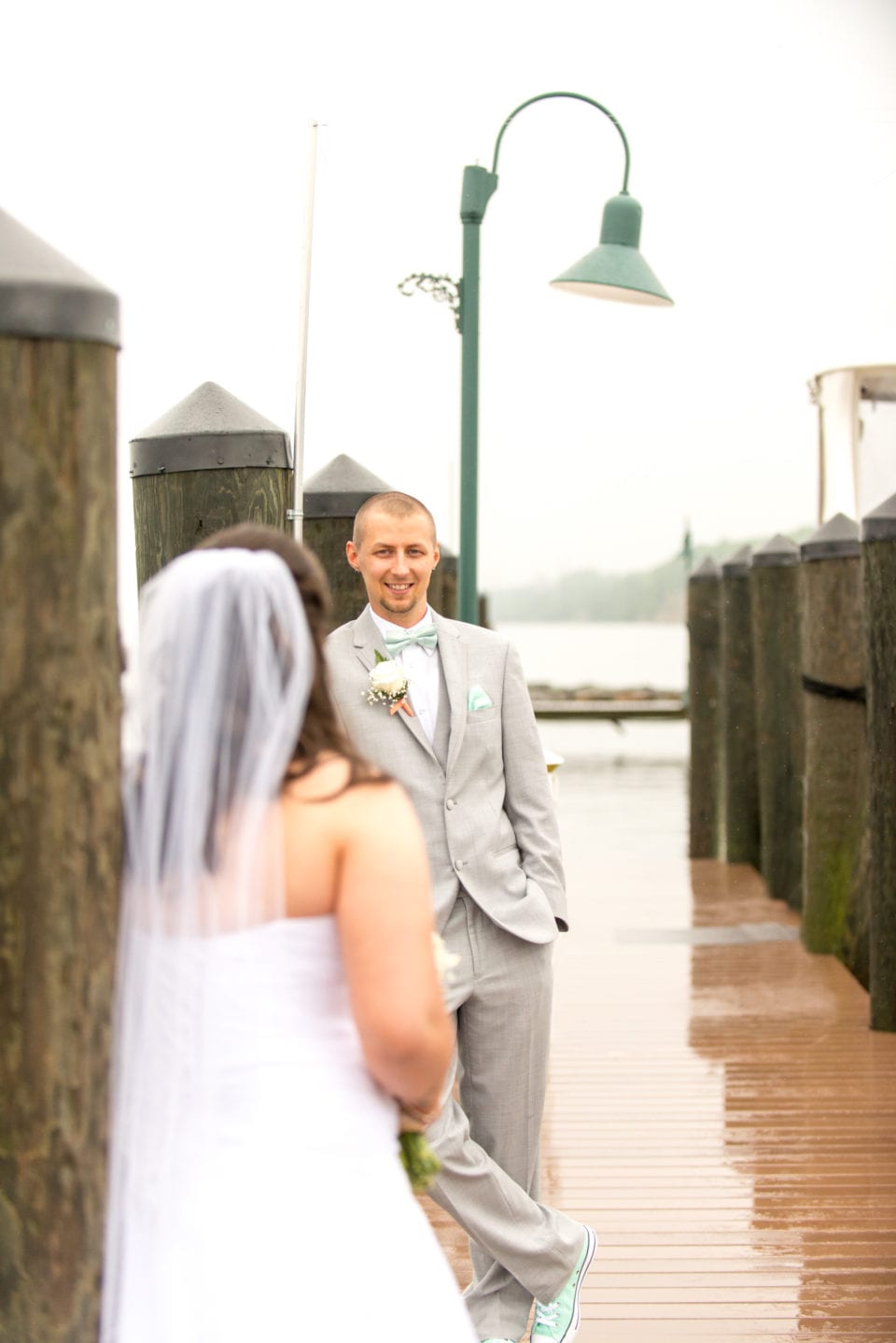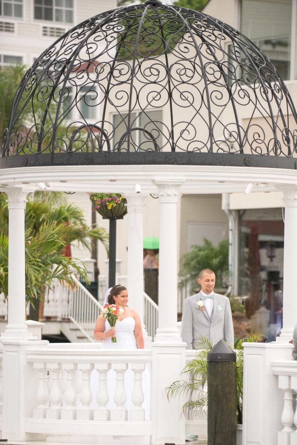 CLICK HERE to view photos in FULL SCREEN – It was one of those weeks for Trans4mation Photography – Annapolis Wedding Photographer. What do I mean? I mean that tropical-like rain virtually submerged the Atlantic coastline all the way up into New England. It rained so much I was almost wishing Winter was back! And it was this very weather and the impending weather forecast that started the day for Lauren and Tim, who planned to get married at the Chesapeake Beach Resort. Of course my second photographer Lindsay and I, along with Lauren, Tim, and their guests had hoped for better weather. The beach ceremony was in jeopardy. Outdoor First Look shots and portraits looked more and more unlikely as the rain poured down. Words weren’t necessary, but you felt that everyone was thinking “will the ceremony be rained out?” Fortunately, I brought about a dozen clear, parabolic umbrellas that make photography in rain a creative and artistic, albeit not easy, exercise.