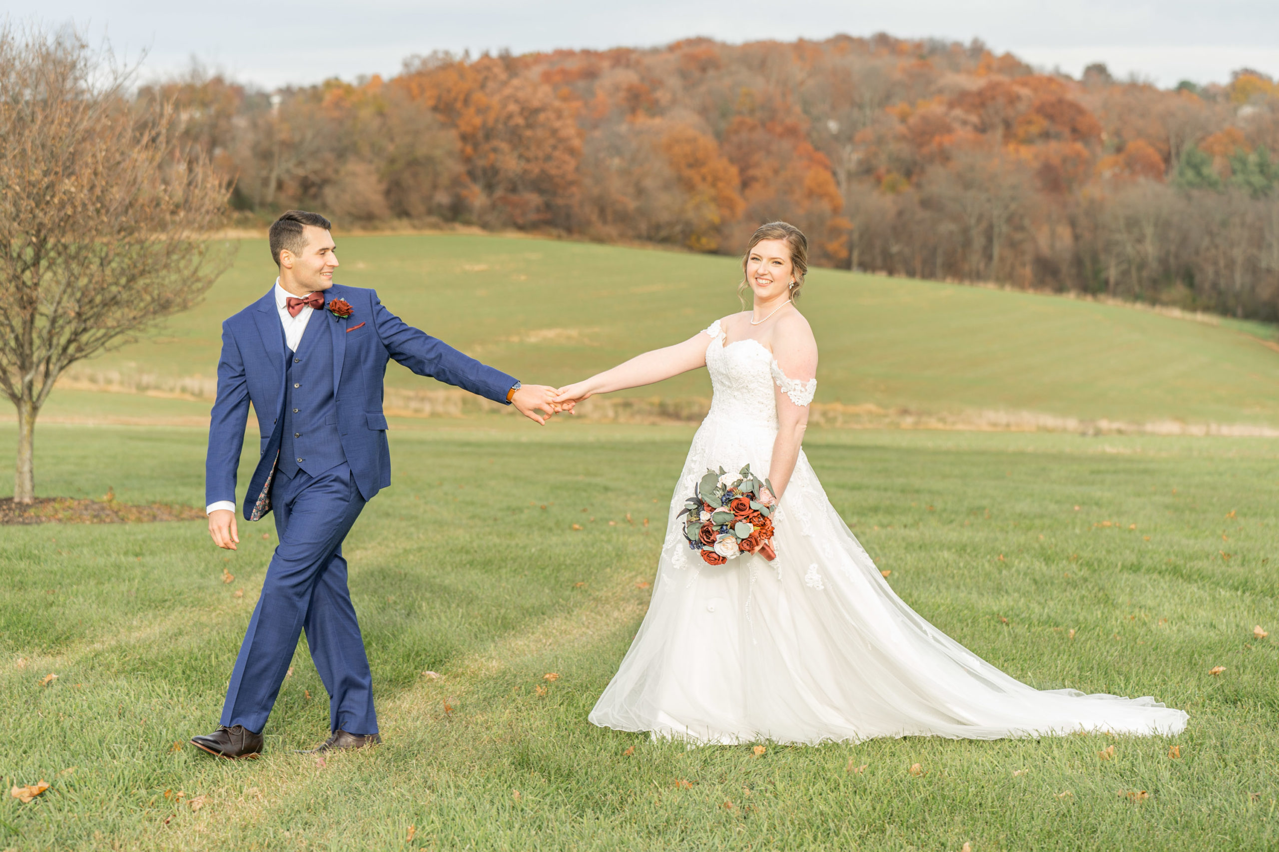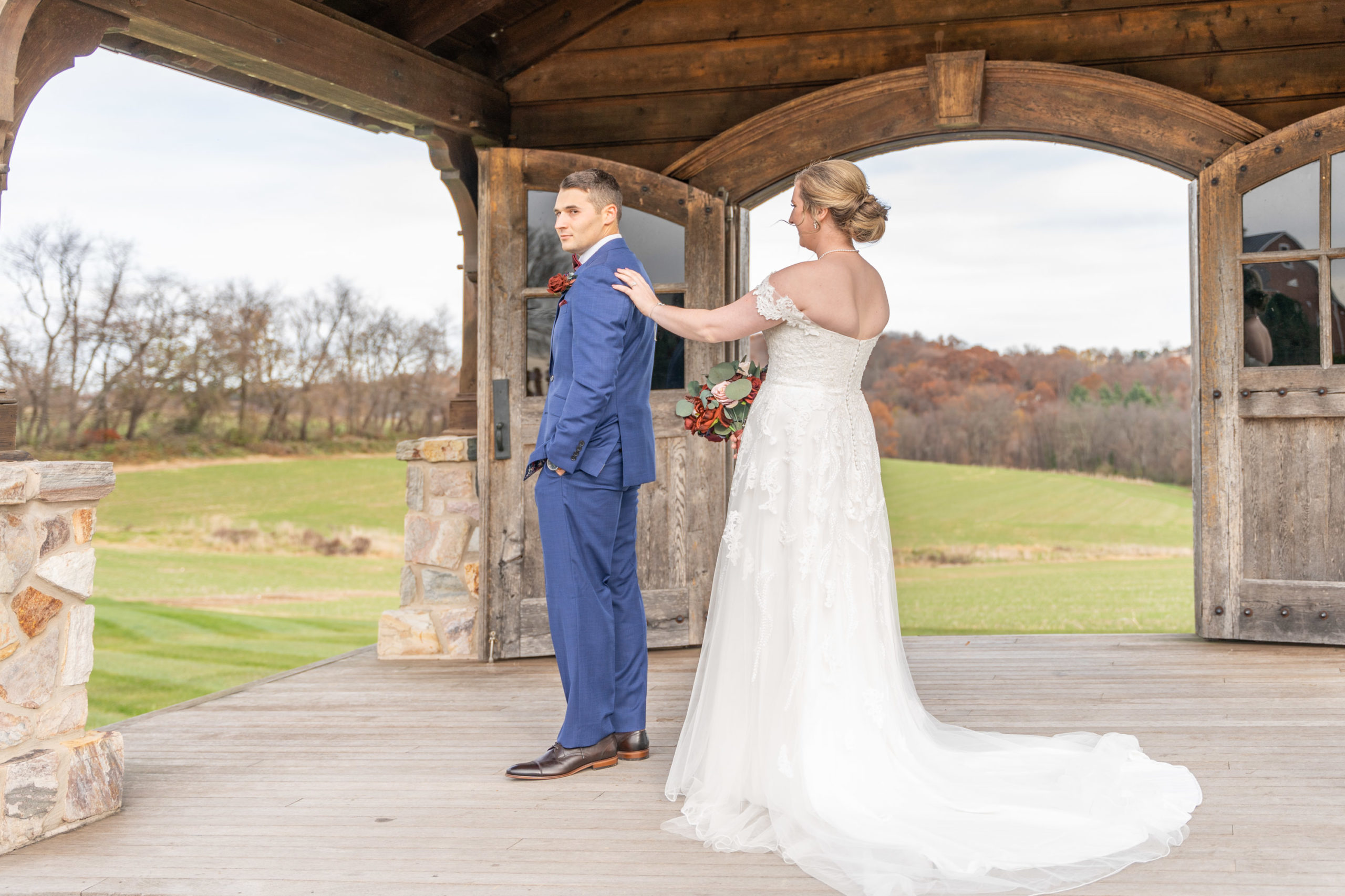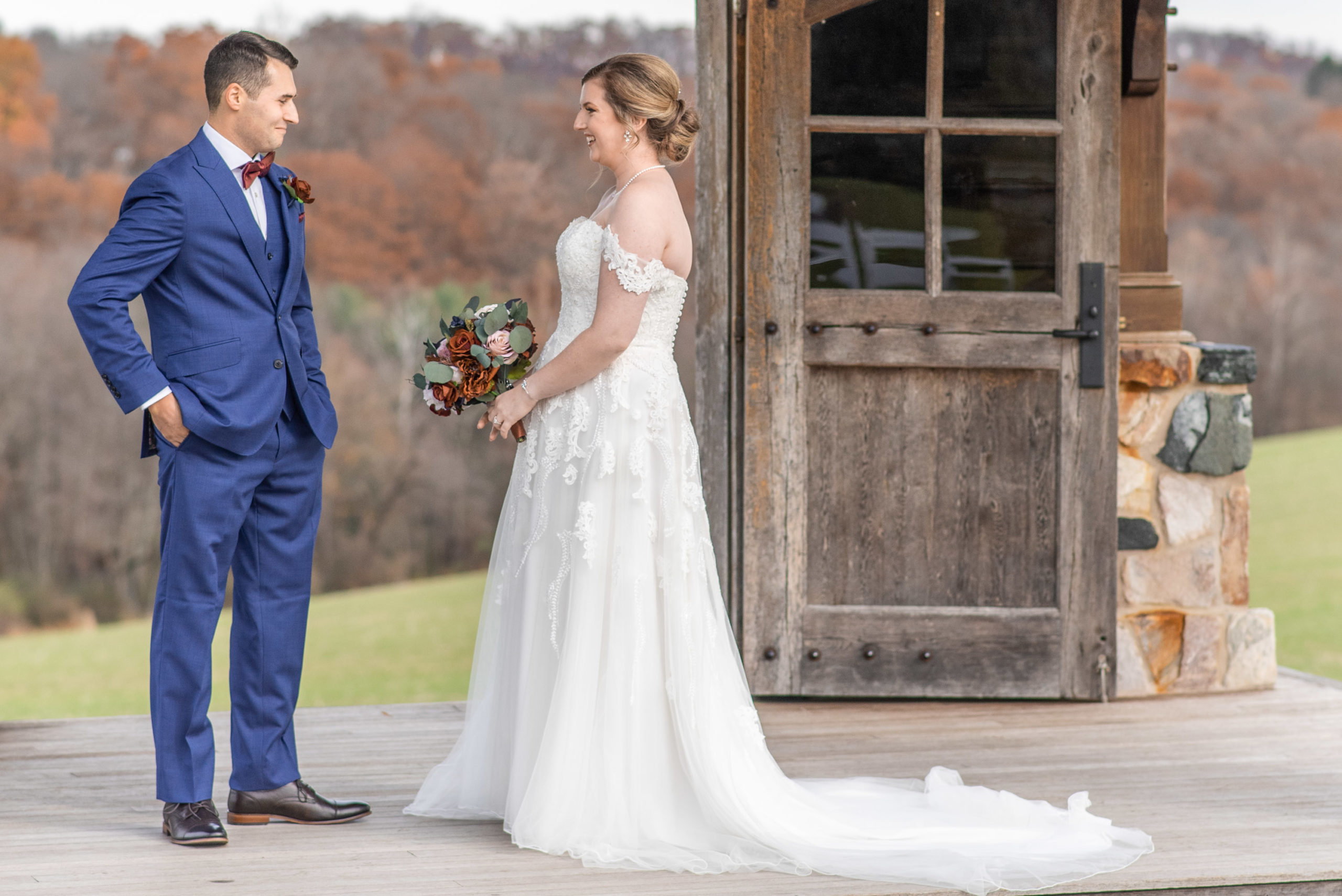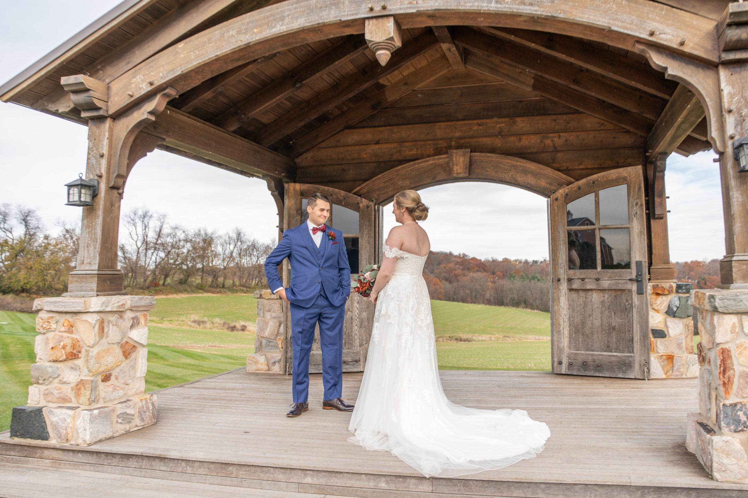 So on this November day in 2021, Katie and Stephen had what I would call the “perfect” weather: mostly clear and cool, light cloud coverage to help diffuse the sunlight and make for warm photos, impeccable service and catering by Wyndridge Farms, exceptional team of vendors and Day-of Coordinators, and a great gathering of their closest friends and families. Who could ask for more?!