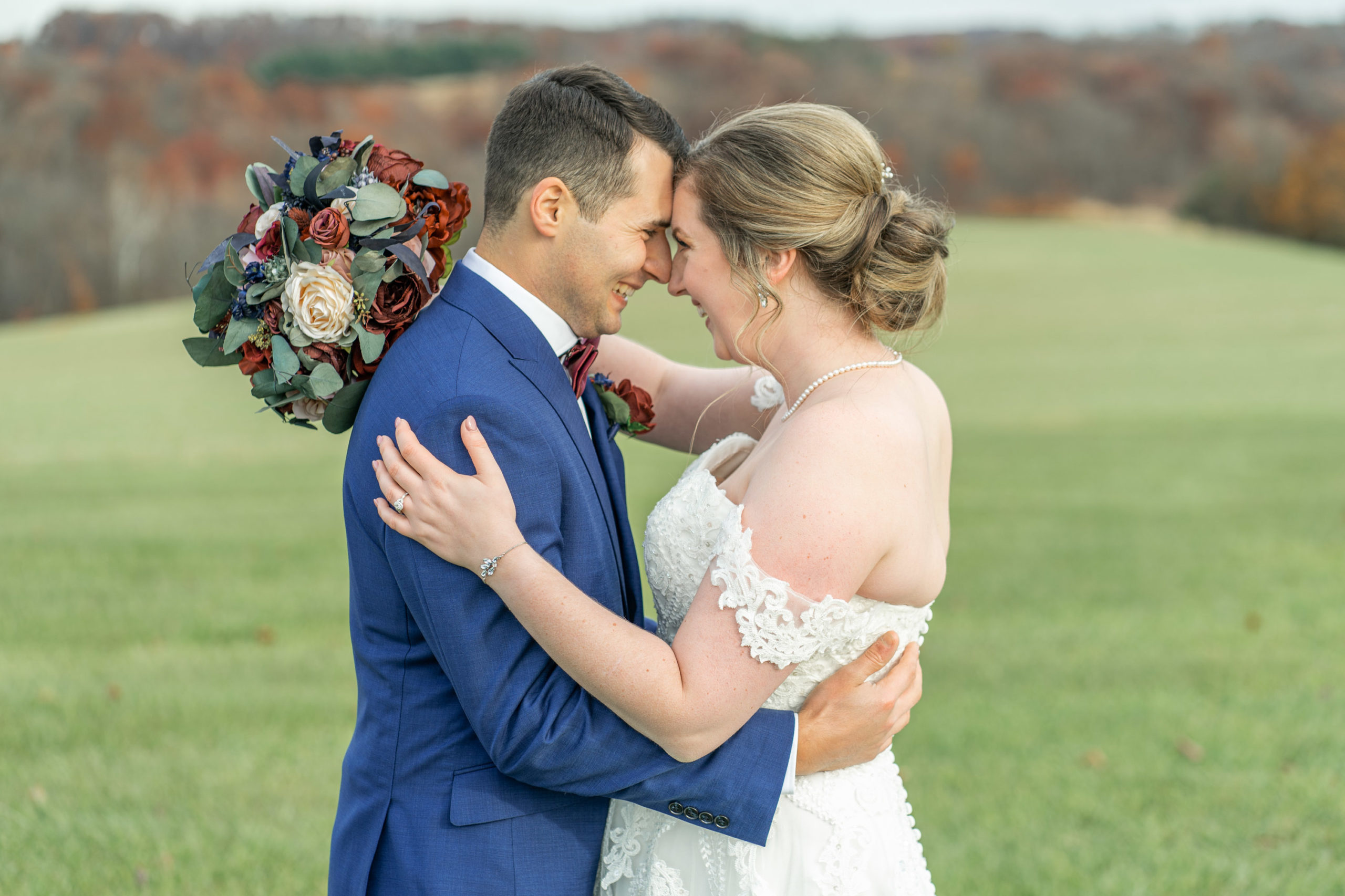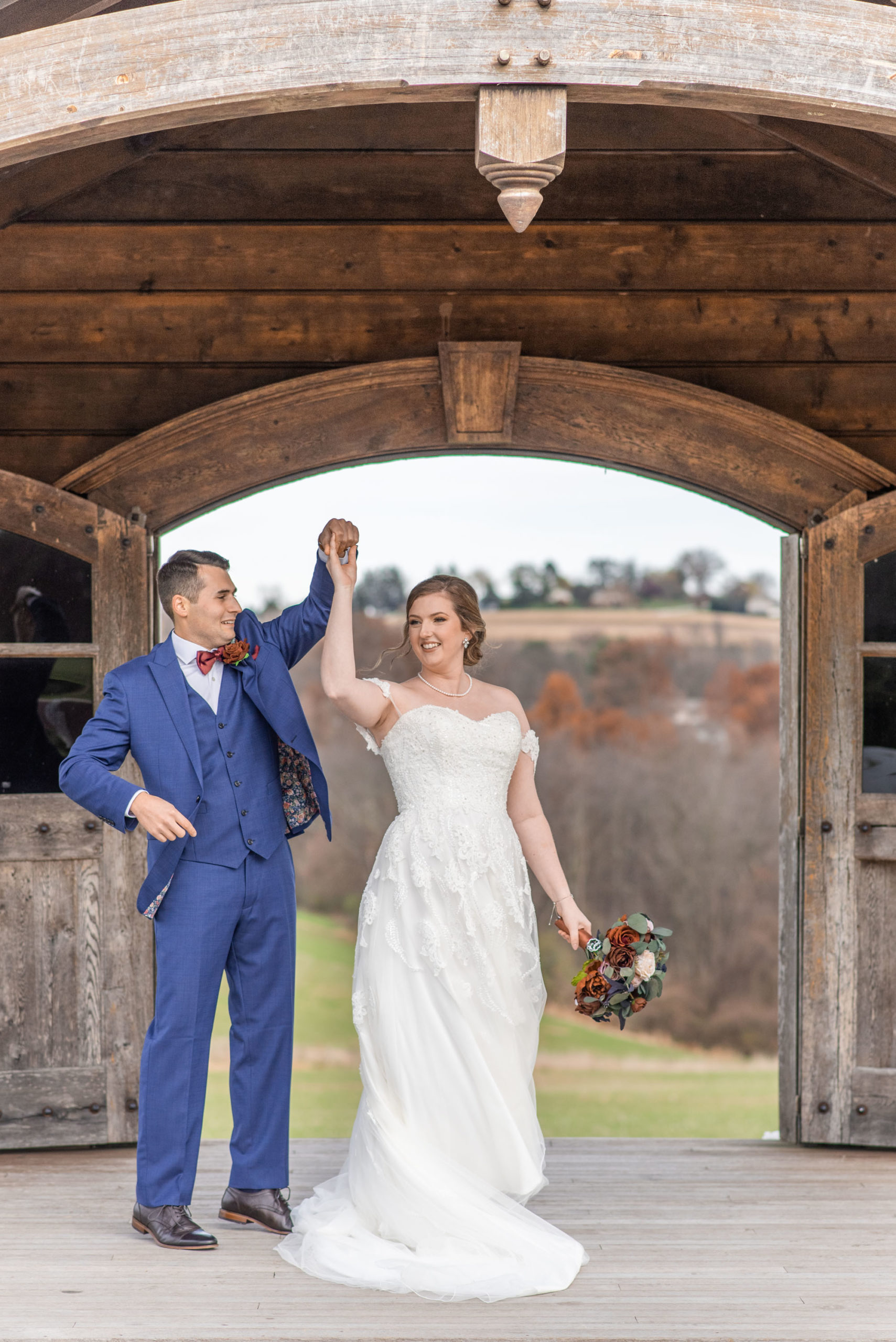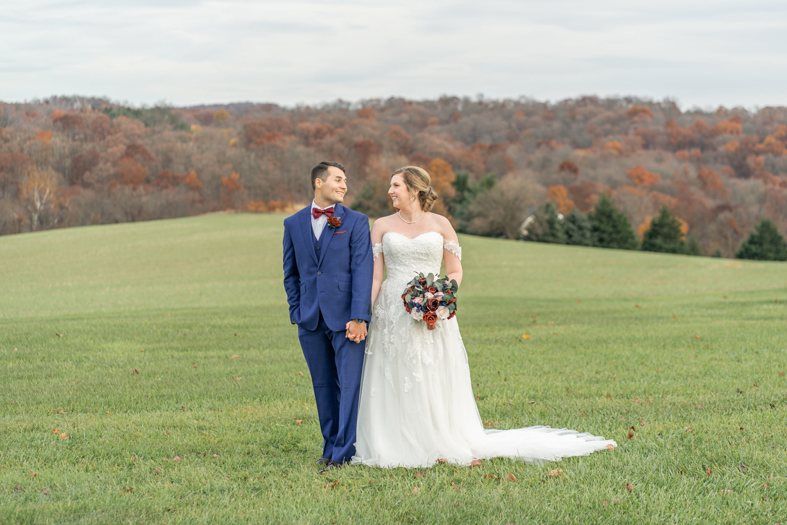 So on this November day in 2021, Katie and Stephen had what I would call the “perfect” weather: mostly clear and cool, light cloud coverage to help diffuse the sunlight and make for warm photos, impeccable service and catering by Wyndridge Farms, exceptional team of vendors and Day-of Coordinators, and a great gathering of their closest friends and families. Who could ask for more?!