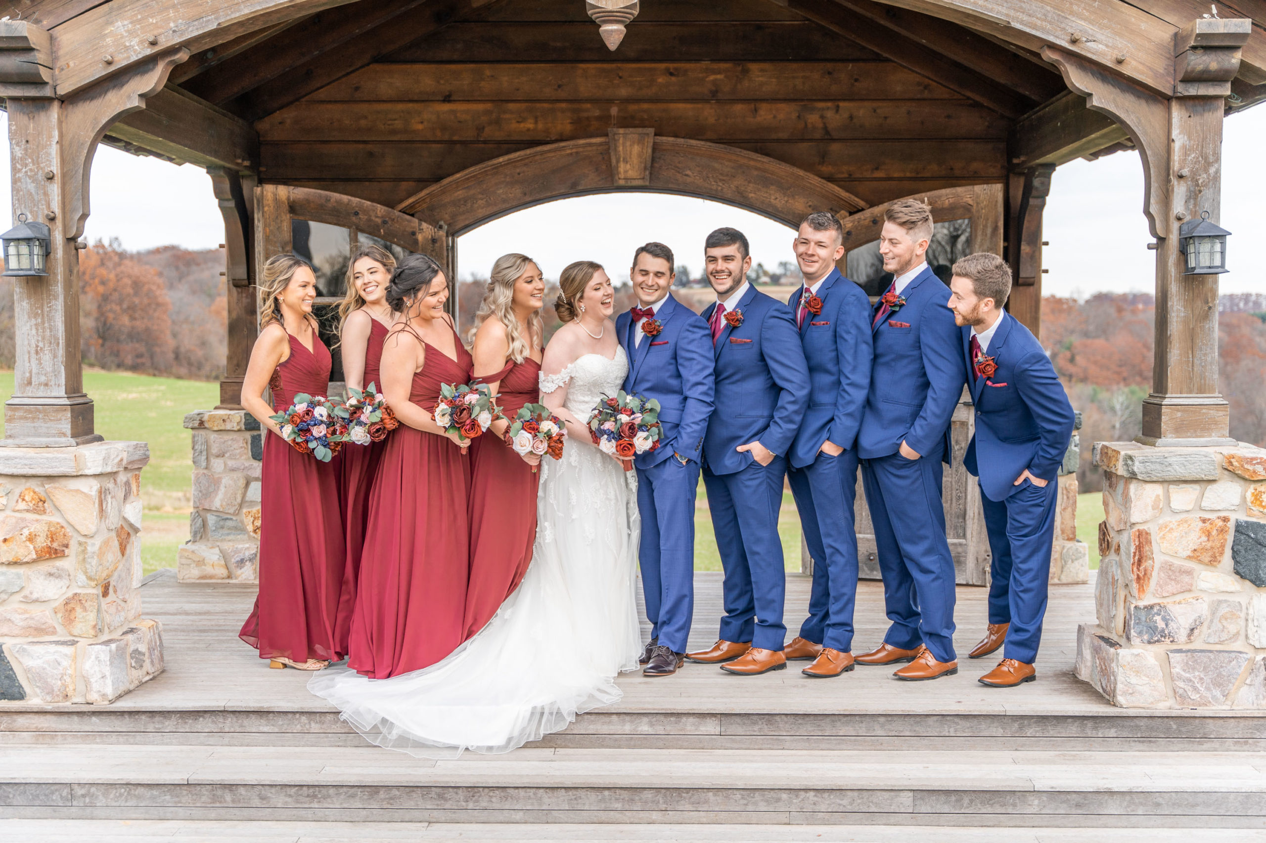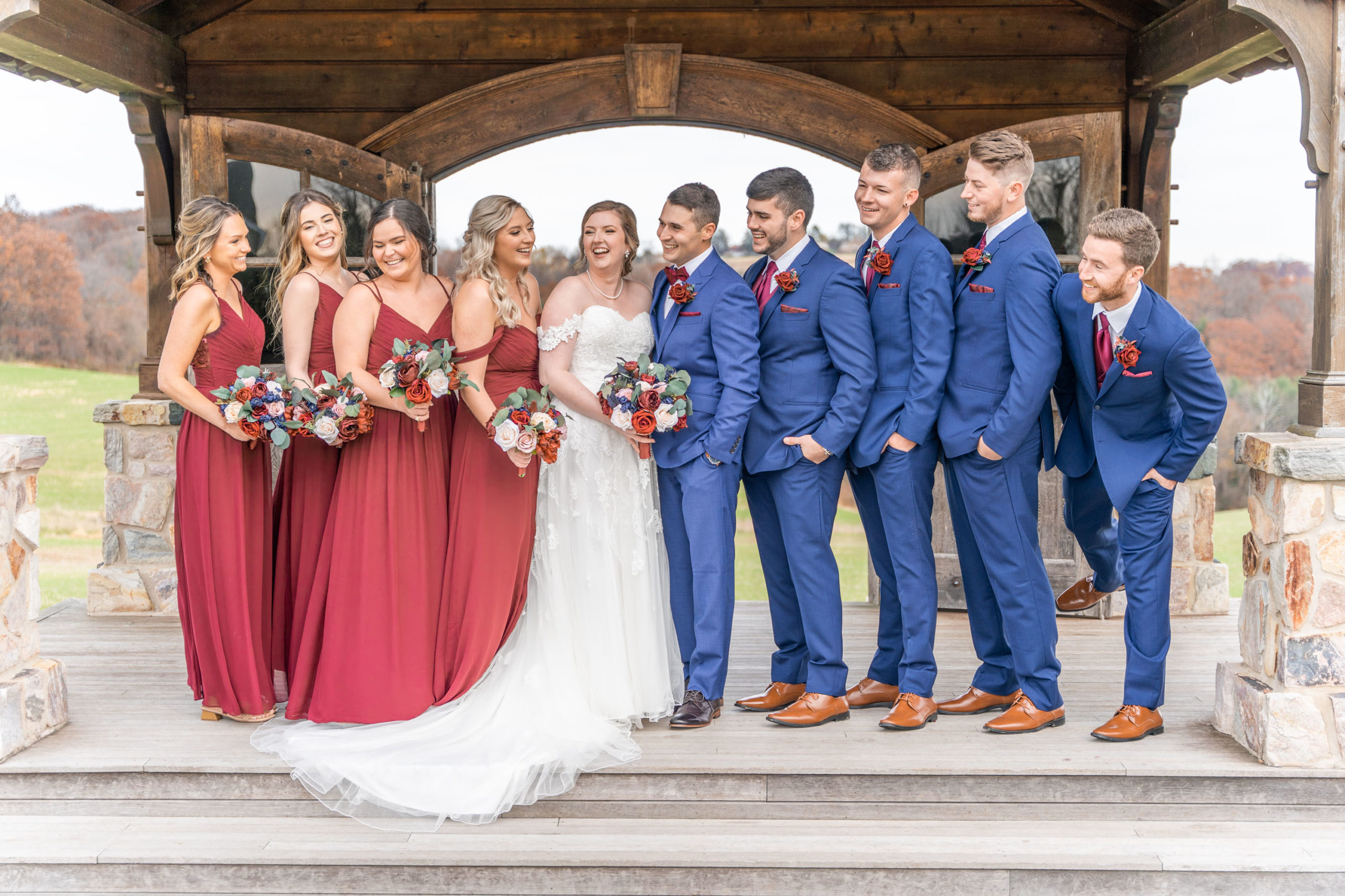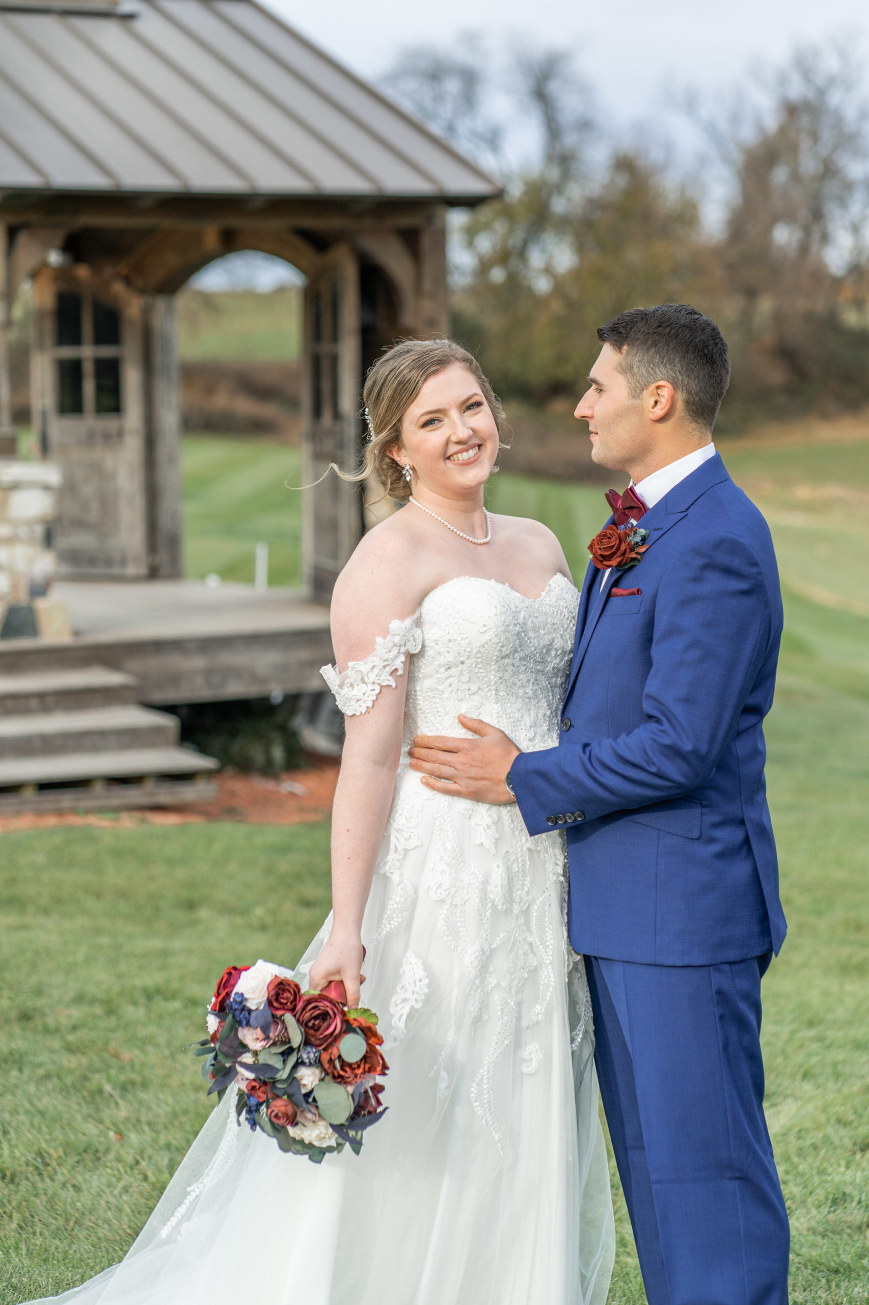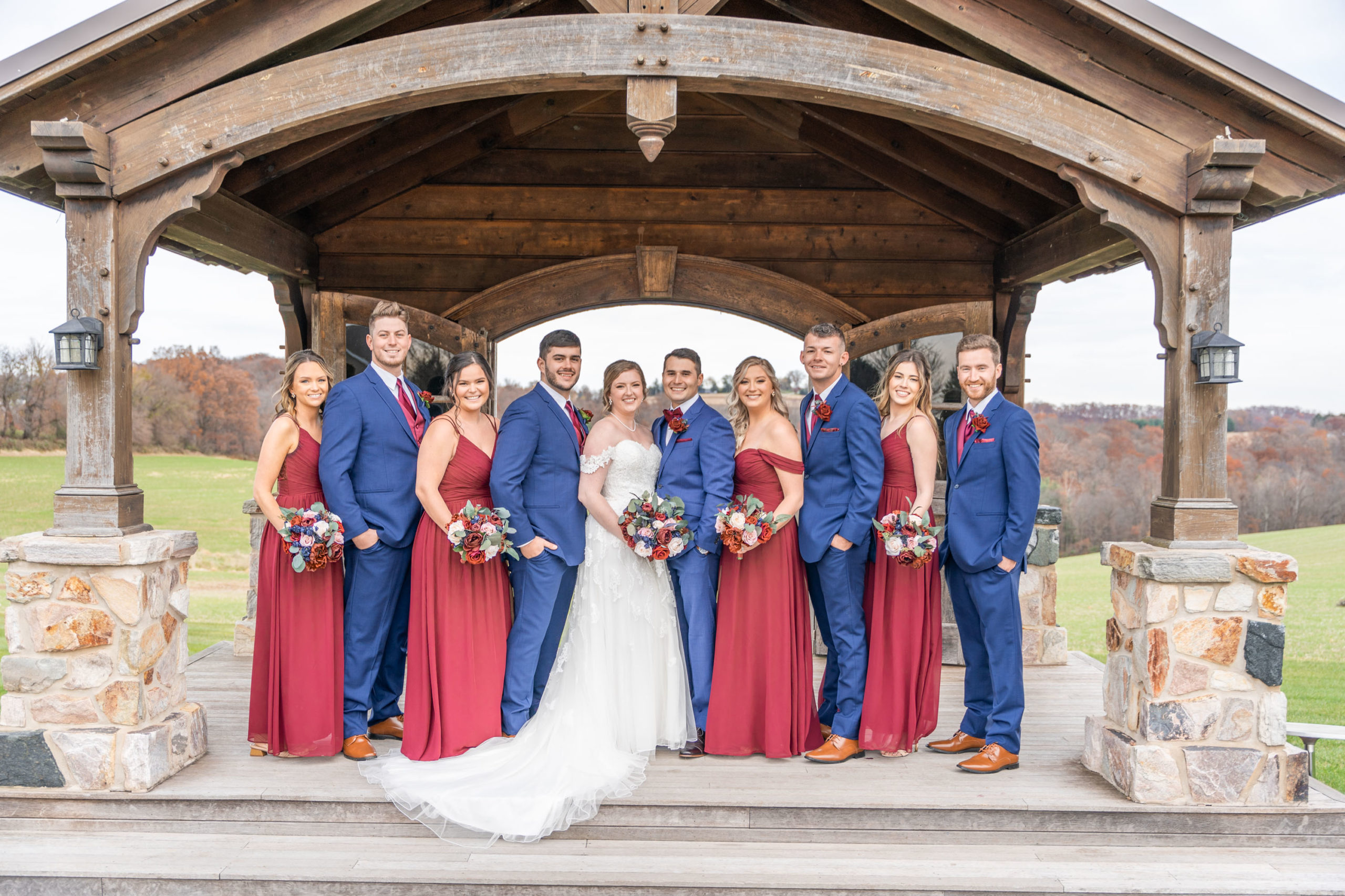 So on this November day in 2021, Katie and Stephen had what I would call the “perfect” weather: mostly clear and cool, light cloud coverage to help diffuse the sunlight and make for warm photos, impeccable service and catering by Wyndridge Farms, exceptional team of vendors and Day-of Coordinators, and a great gathering of their closest friends and families. Who could ask for more?!