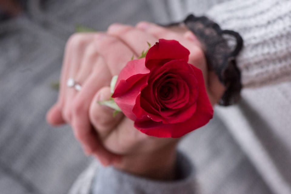 So how did he get Mariah to join him outside on this cold day? He suggested that they go out for wine at Red Red Wine Bar off of Main Street. At exactly 0345 hours, their Uber driver dropped them off near the pier, and Jourdan, fearing that Mariah may have guessed the surprise, bolted out of the car, grabbing Mariah’s hand, and made a bee line to the “Free Kittens” sign. Instead of kittens, Mariah saw a “Look Behind You” sign inside the box, along with a single rose (and two other familiar faces). Turning around, she found Jourdan on one knee, asking her to be his bride!