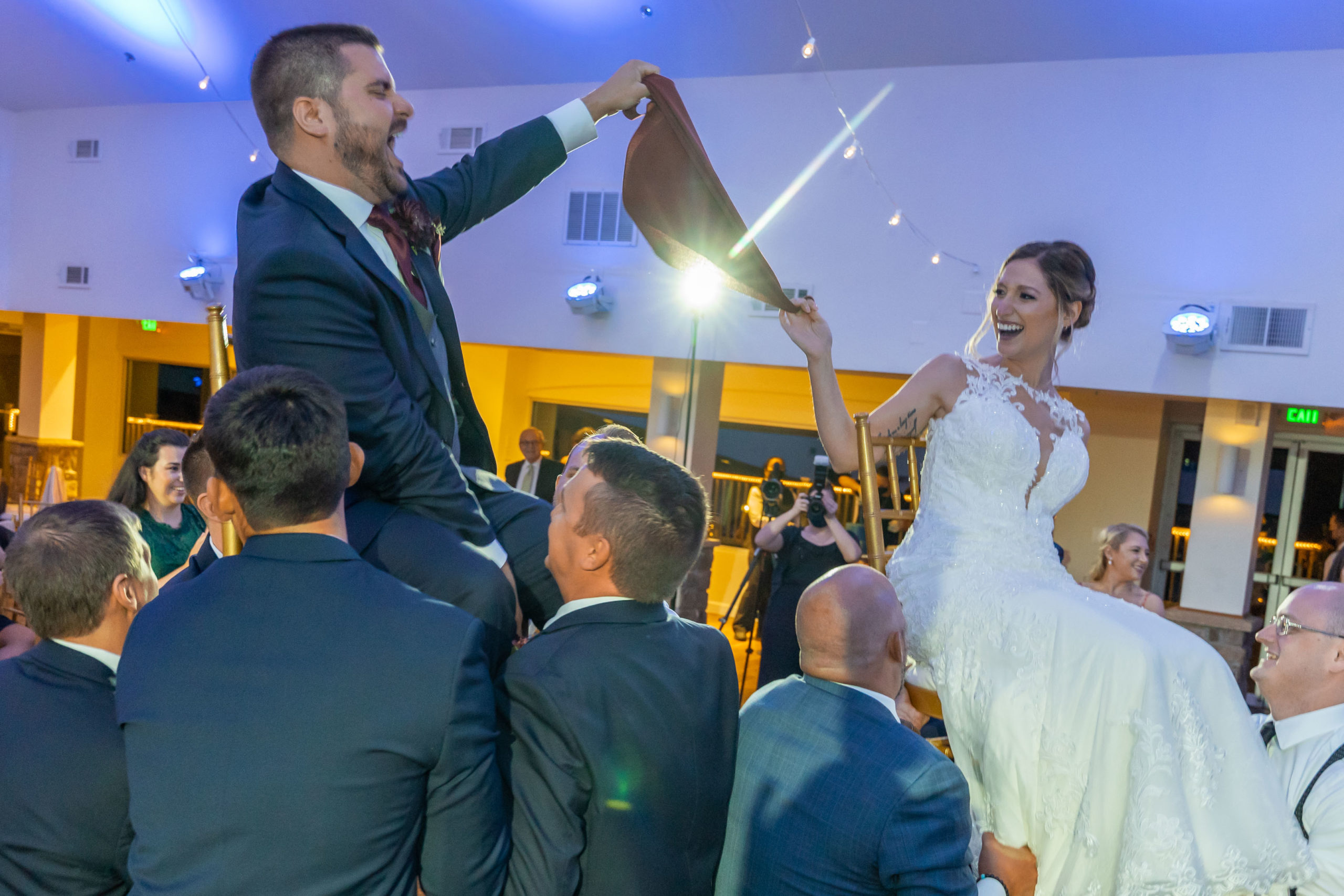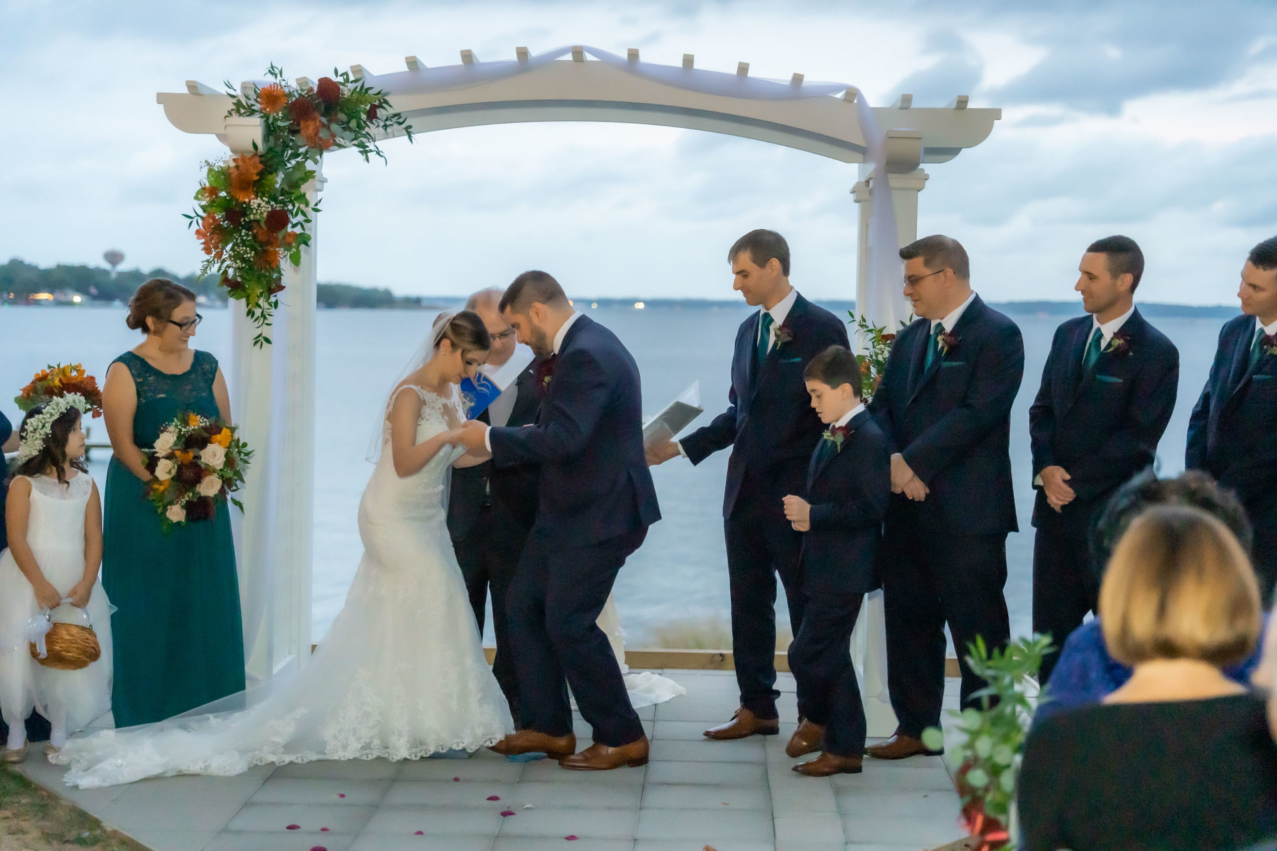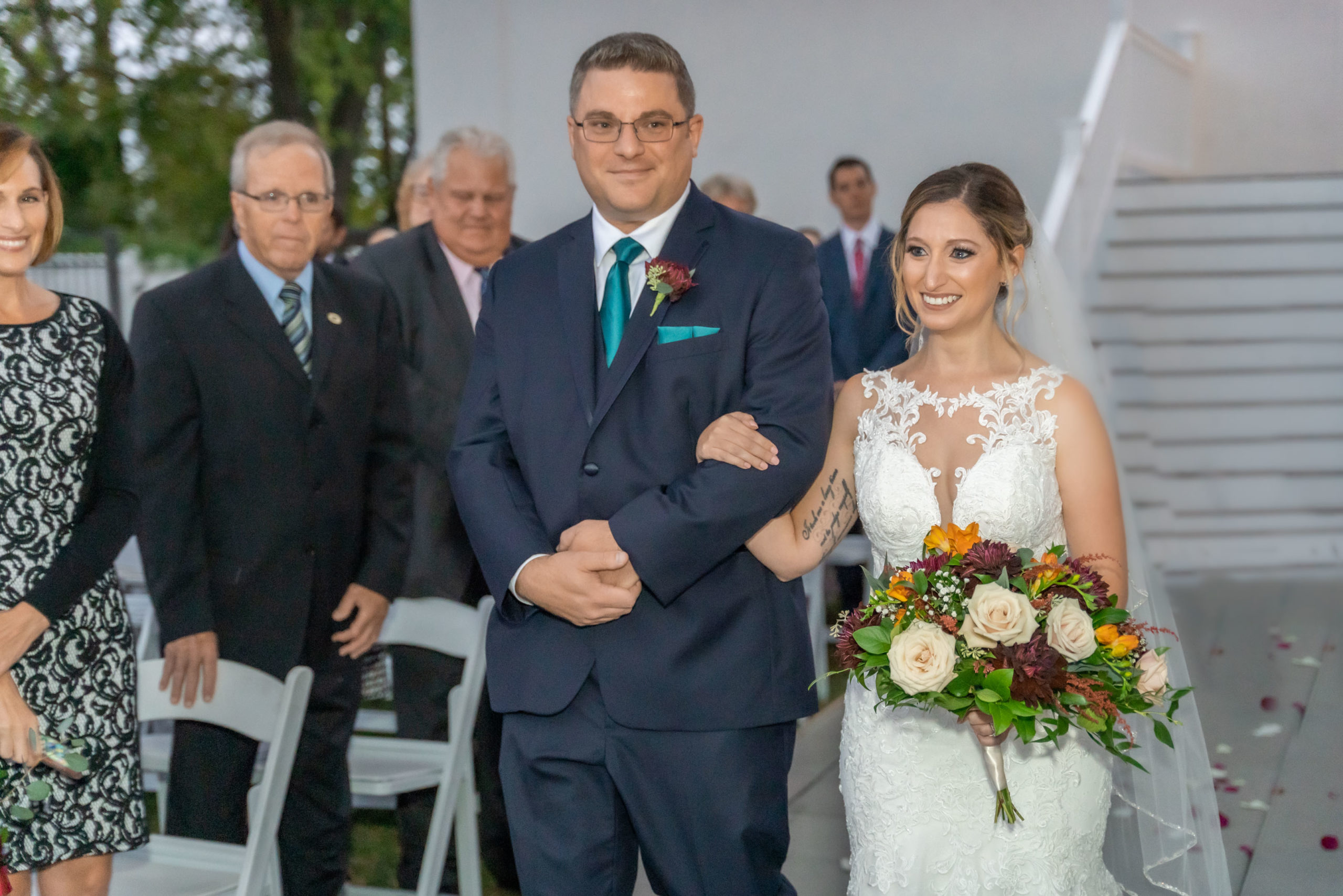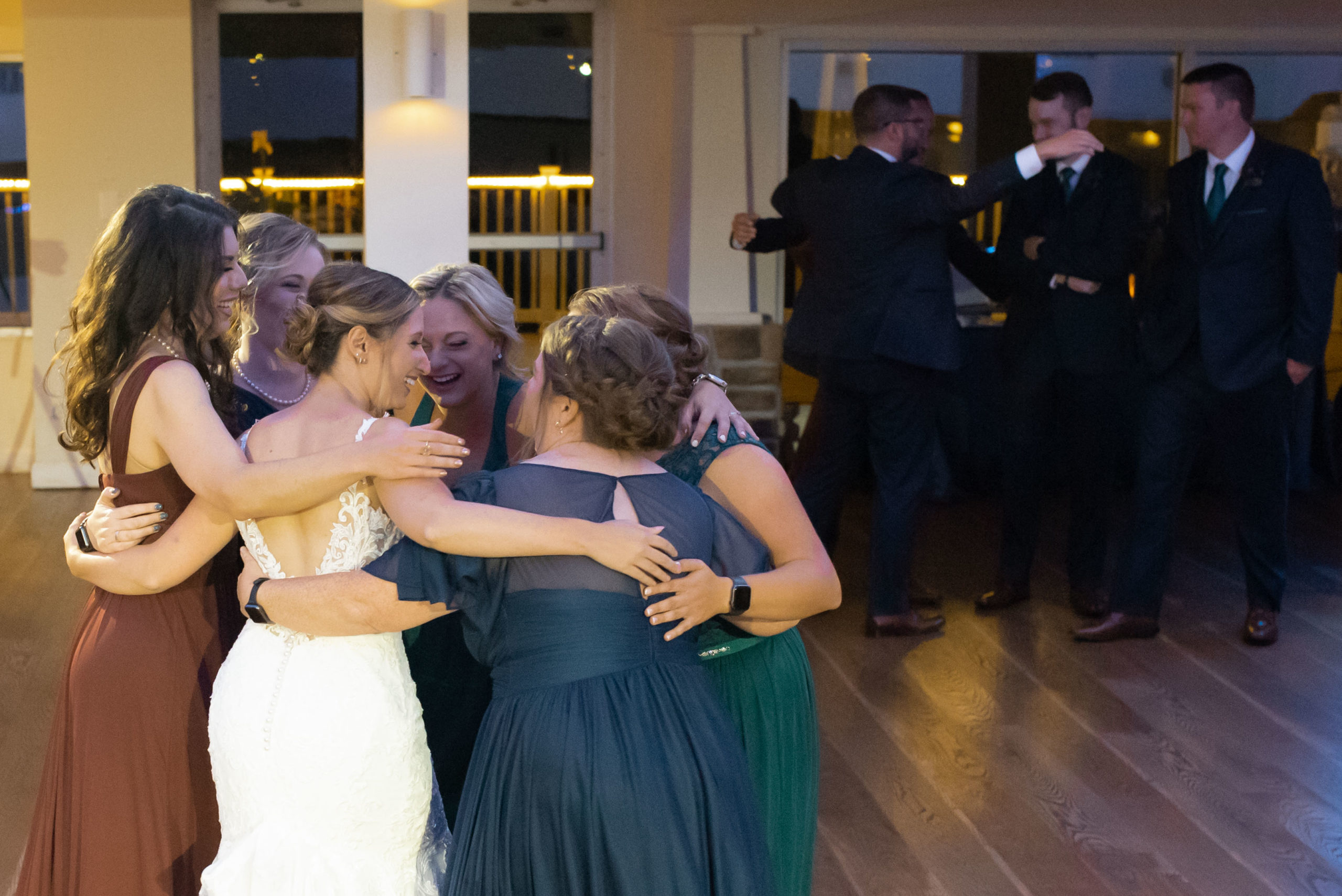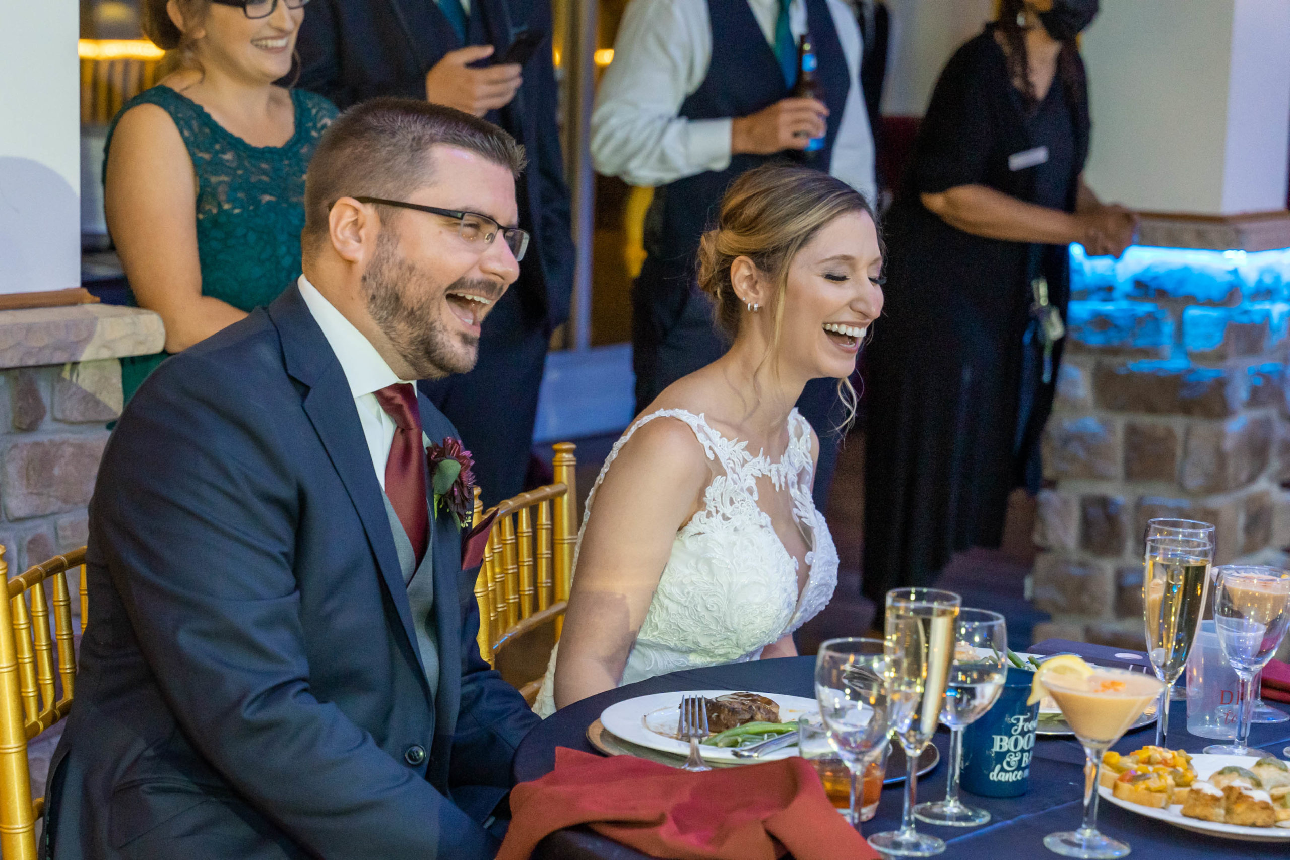 A week ago today, both Rebecca and Patrick, along with their friends and relatives, exchanged their vows and sealed it with a kiss at the beautiful waterfront wedding property known as The Bayfront Club – one of several Catering by Uptown venues in and around Baltimore, Maryland. This venue showcases a beautiful ballroom with windows overlooking the Chesapeake Bay. A large deck overlooks several grass fields, one with an arch for outdoor ceremony. This facility also boasts having a long pier for extra phun, photos, and phestivities!