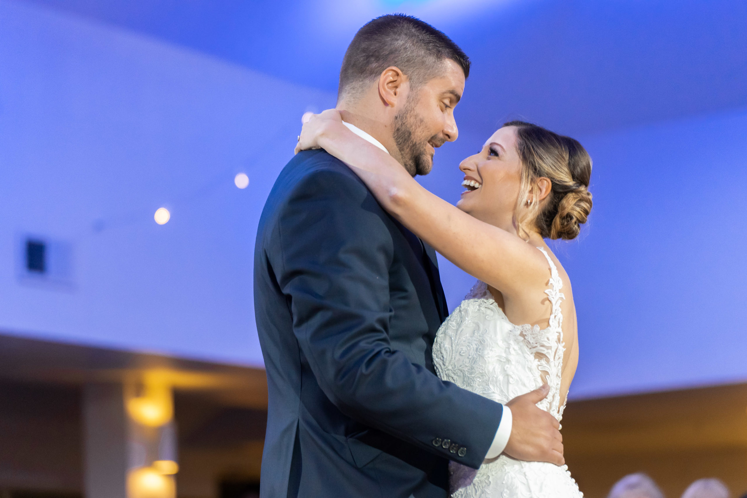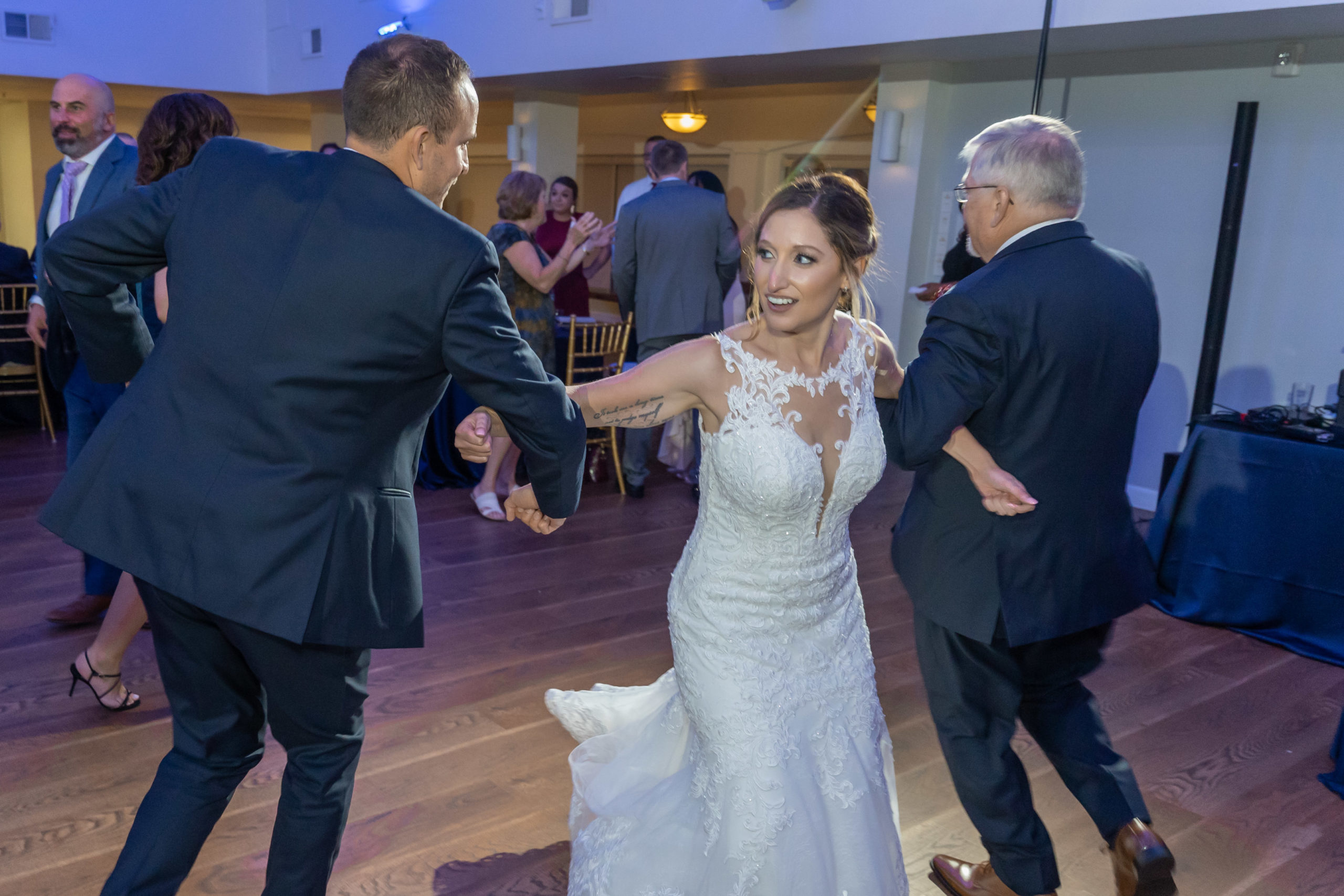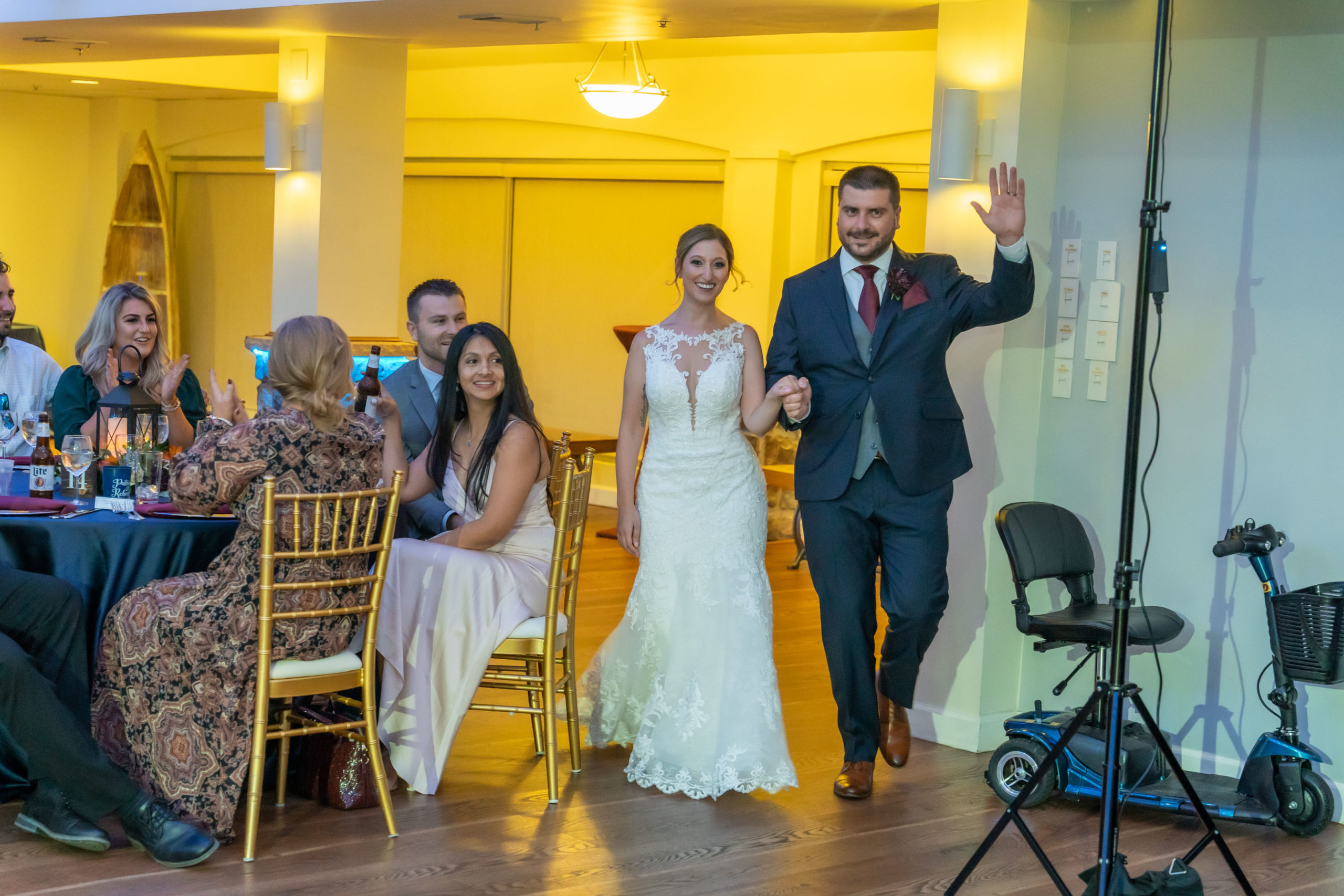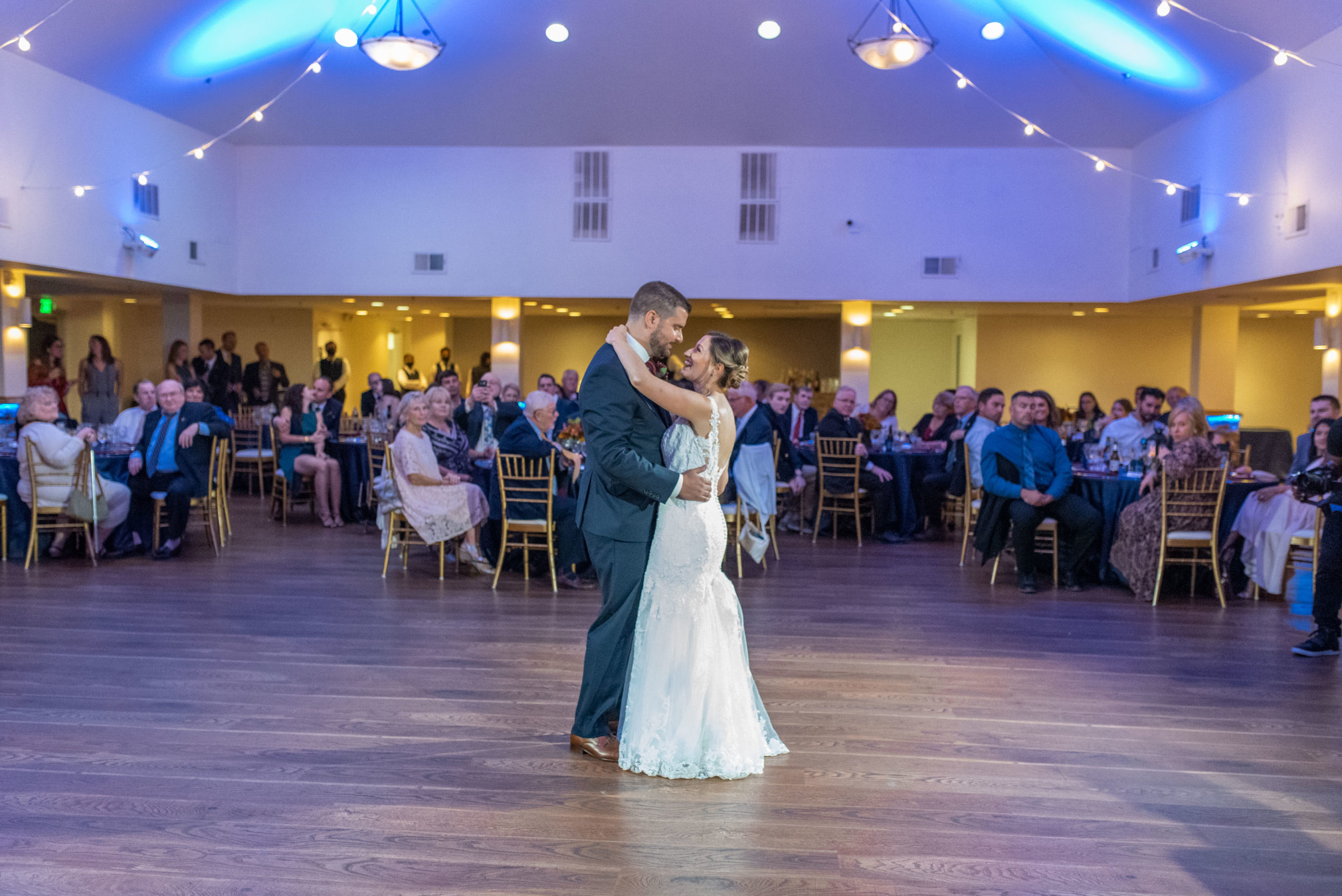 A week ago today, both Rebecca and Patrick, along with their friends and relatives, exchanged their vows and sealed it with a kiss at the beautiful waterfront wedding property known as The Bayfront Club – one of several Catering by Uptown venues in and around Baltimore, Maryland. This venue showcases a beautiful ballroom with windows overlooking the Chesapeake Bay. A large deck overlooks several grass fields, one with an arch for outdoor ceremony. This facility also boasts having a long pier for extra phun, photos, and phestivities!