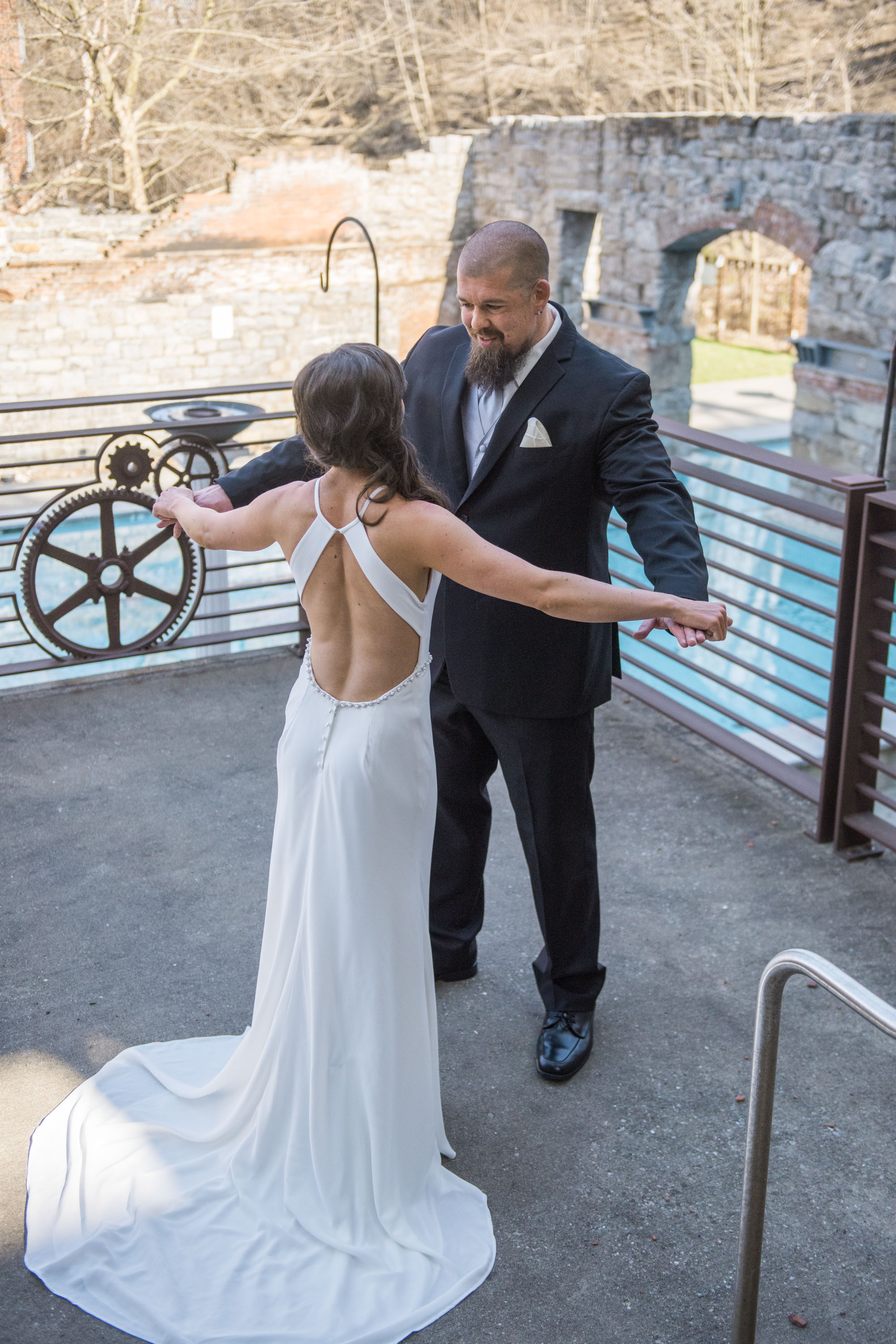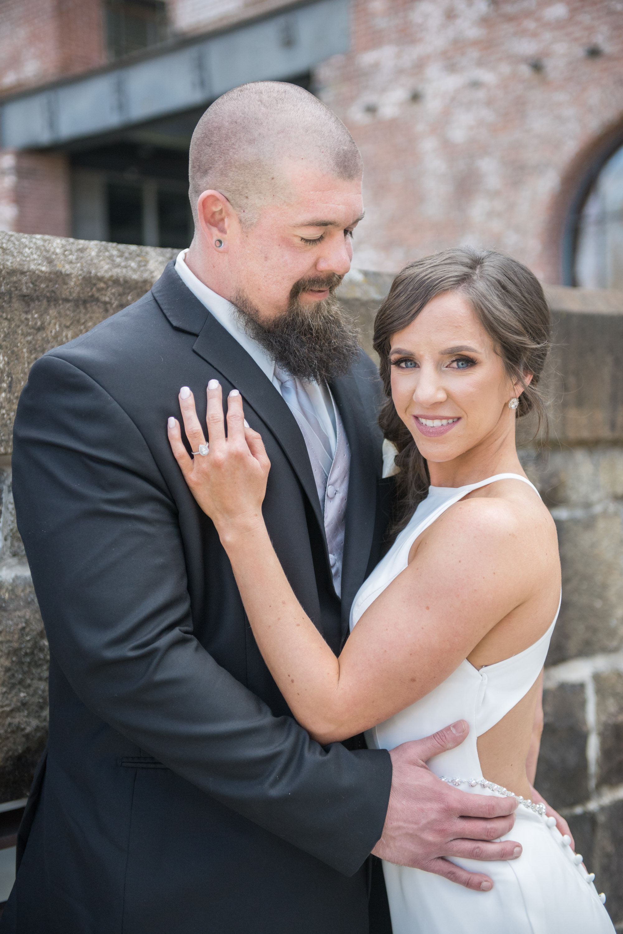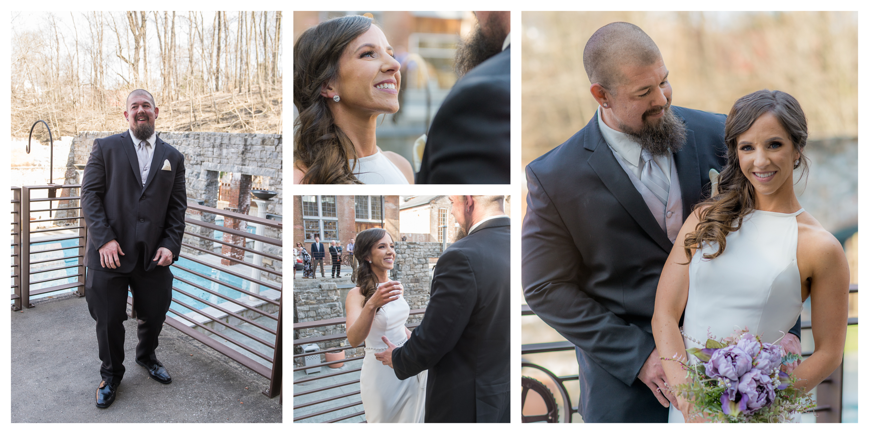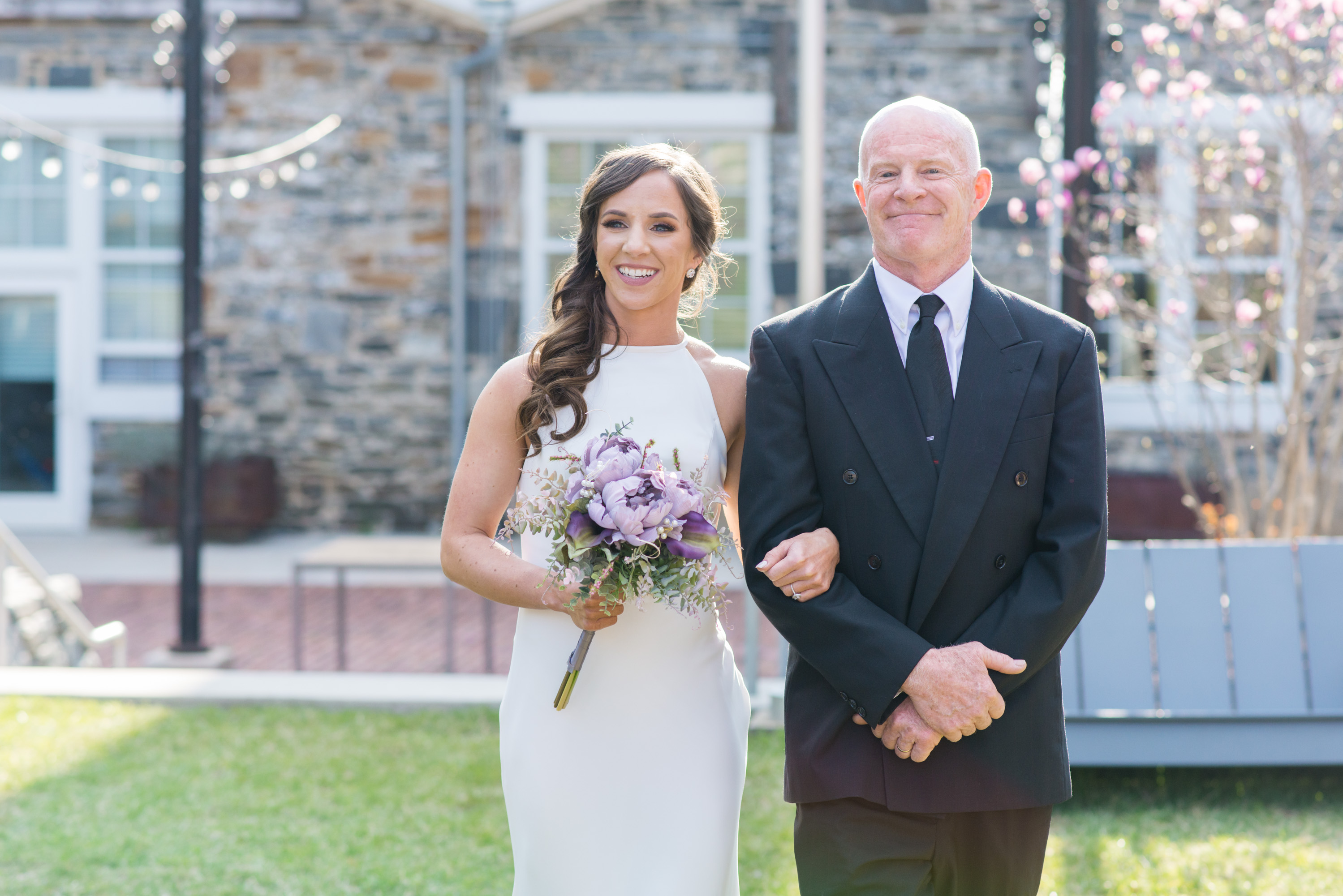 On this breathtaking Spring day, we planned the first look at Union Mill in Baltimore – a historic district that’s been re-purposed into beautiful restaurants, condominiums, businesses, along with an art district. Great texture which served as a beautiful backdrop to many of their photos. I made them walk down to the railroad tracks and walk along the tracks for some fun shots. We then went to Artifact Coffee, where a team of culinary experts from the famed Woodberry Kitchen served up a beautiful reception and dinner for Chelsea and Chris’ family and guests.