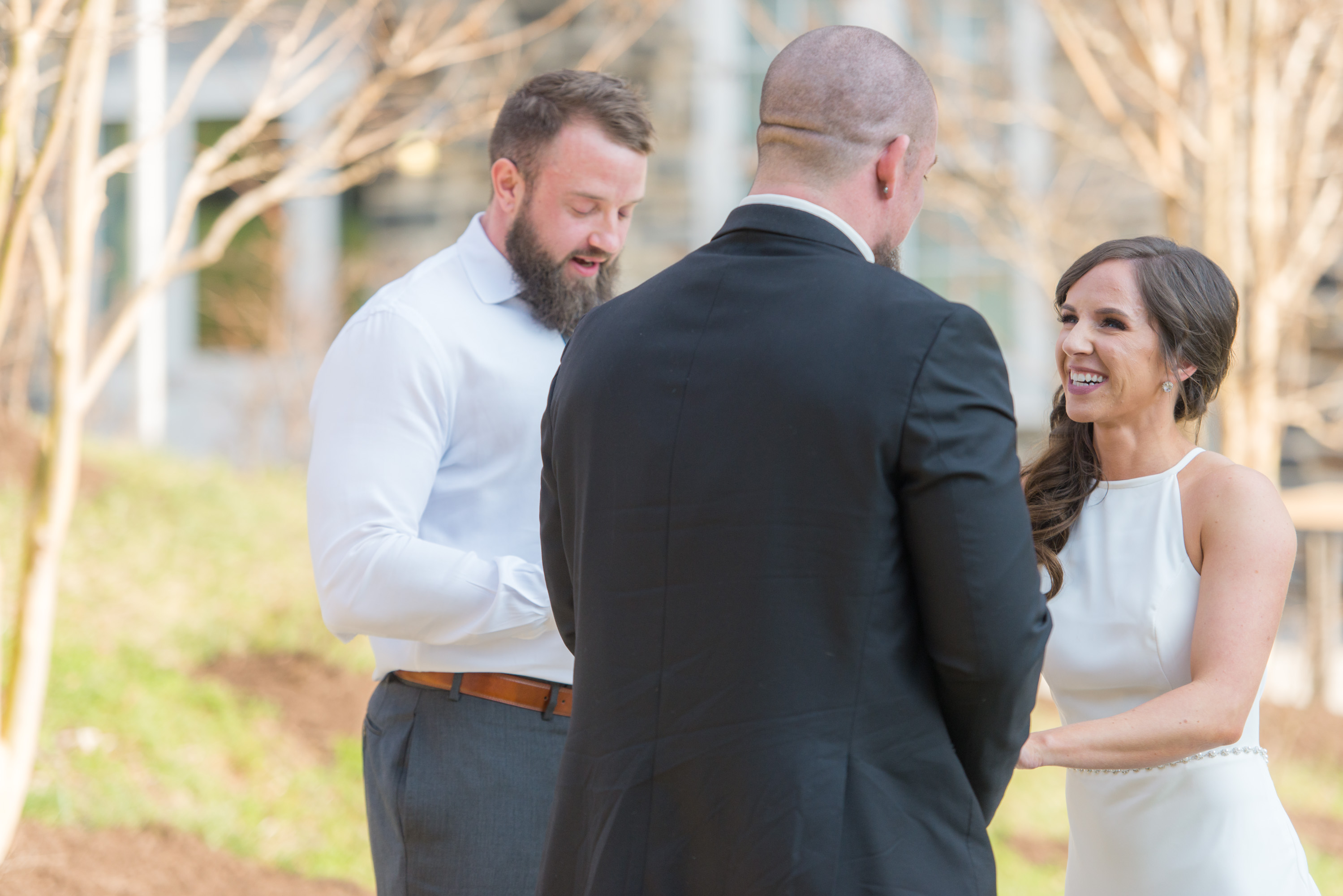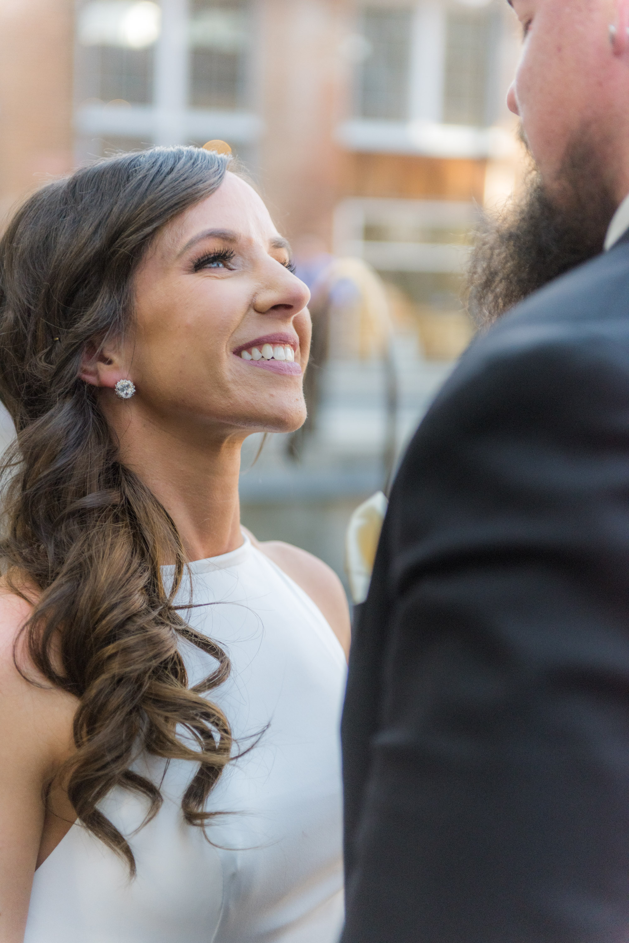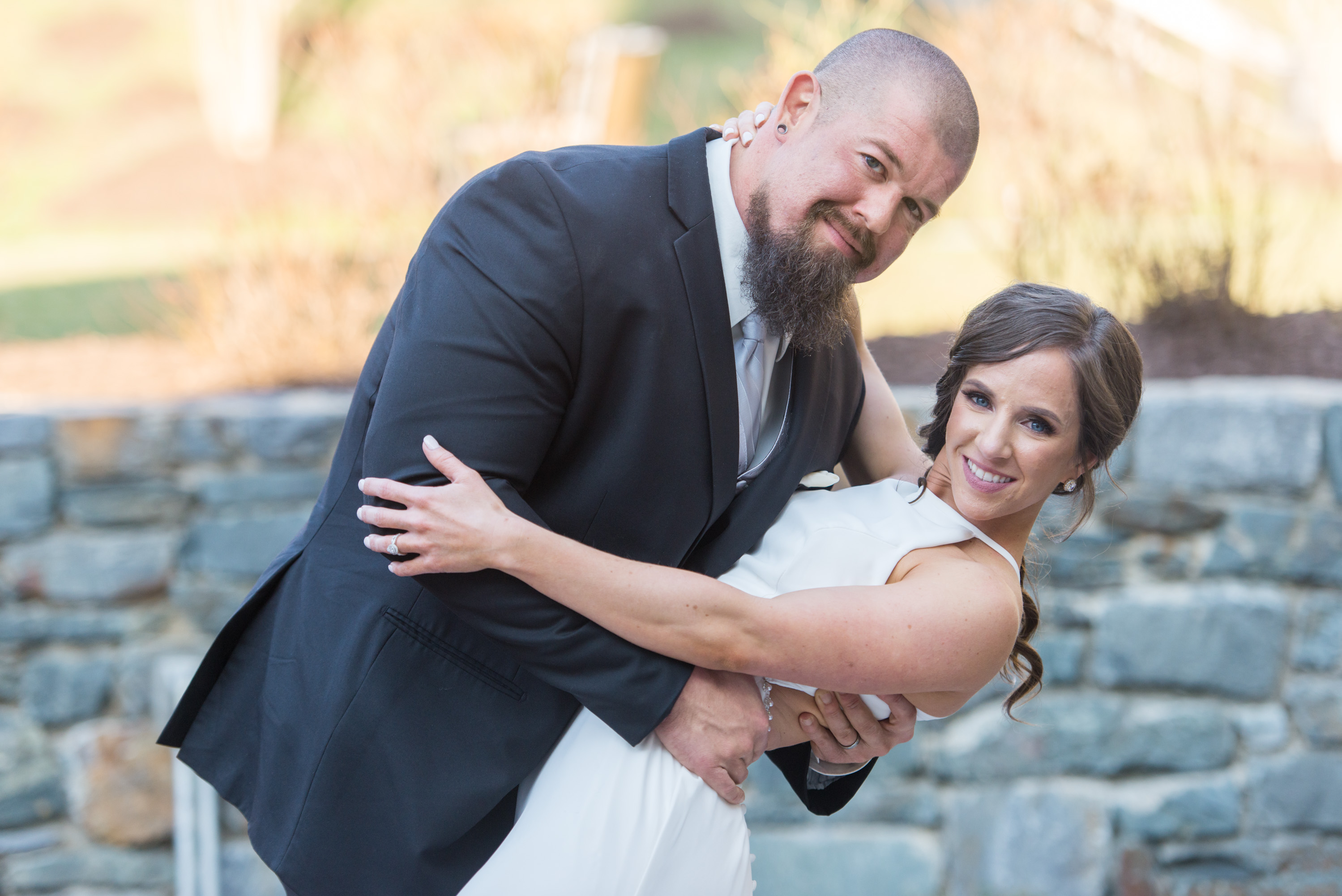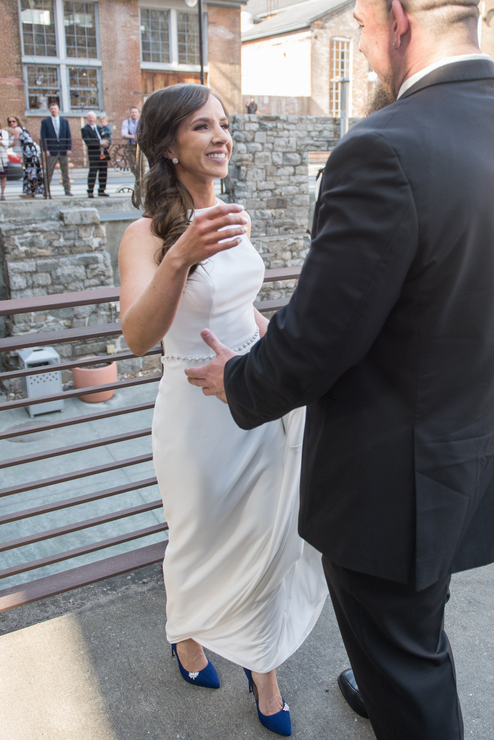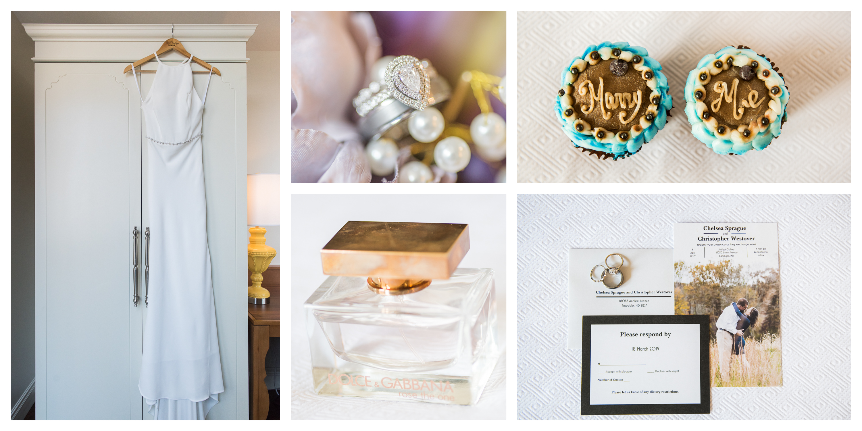 On this breathtaking Spring day, we planned the first look at Union Mill in Baltimore – a historic district that’s been re-purposed into beautiful restaurants, condominiums, businesses, along with an art district. Great texture which served as a beautiful backdrop to many of their photos. I made them walk down to the railroad tracks and walk along the tracks for some fun shots. We then went to Artifact Coffee, where a team of culinary experts from the famed Woodberry Kitchen served up a beautiful reception and dinner for Chelsea and Chris’ family and guests.